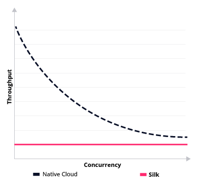 Enterprise environments rarely run a single application at a time. When multiple applications, users, and services access the same data simultaneously, throughput often collapses due to contention. Silk sustains high throughput under concurrent access so systems can support peak demand without isolating or building redundant infrastructure.
