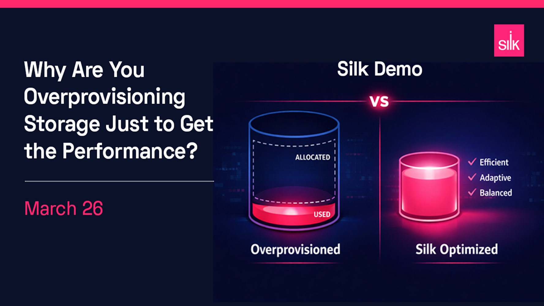 Looking for cloud infrastructure that delivers both speed and savings? Meet Silk—the cloud storage platform engineered to deliver up to 10x faster performance at 40%+ lower cost. In this webinar, Silk experts David Berliner and Ori Weizman explain how Silk’s architecture powers the most demanding workloads, from Oracle to mission-critical applications. You’ll see real benchmarks, customer results, and how Silk enables AI-ready performance in the cloud.